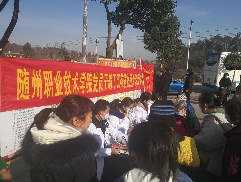 为学习贯彻落实党的十九届五中全会精神,充分发挥党员的先锋模范作用,推动党员下沉服务常态化,12月25日,随州职业技术学院党员教师前往城南新区前进社区开展义诊活动,为社区居民提供血压测量、心肺听诊,专科常见疾病的预防保健及药物治疗咨询,宣传药物合理使用知识,让慢病防治、安全合理用药宣传走进社区、送到基层。