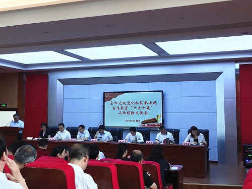 近日,全市党规党纪和监察法规宣传教育“十进十建”工作经验交流会在随州职院学术报告厅召开。对前一阶段工作进行“回头看”,谋划部署下一步重点工作。