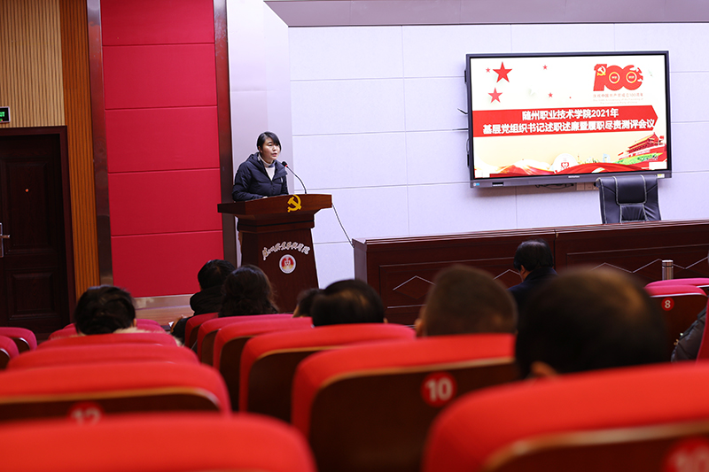 校党委副书记、校长马大奎在讲话中强调,要通过基层党组织书记述职述廉评议,不断加强基层党组织书记抓主业的思想认识,不断改进抓落实的具体措施,不断加大抓创新的工作力度。他重点围绕学校内涵建设、主动融入随州、抢抓发展机遇等方面做了点评,充分肯定了各基层党组织取得的成绩。