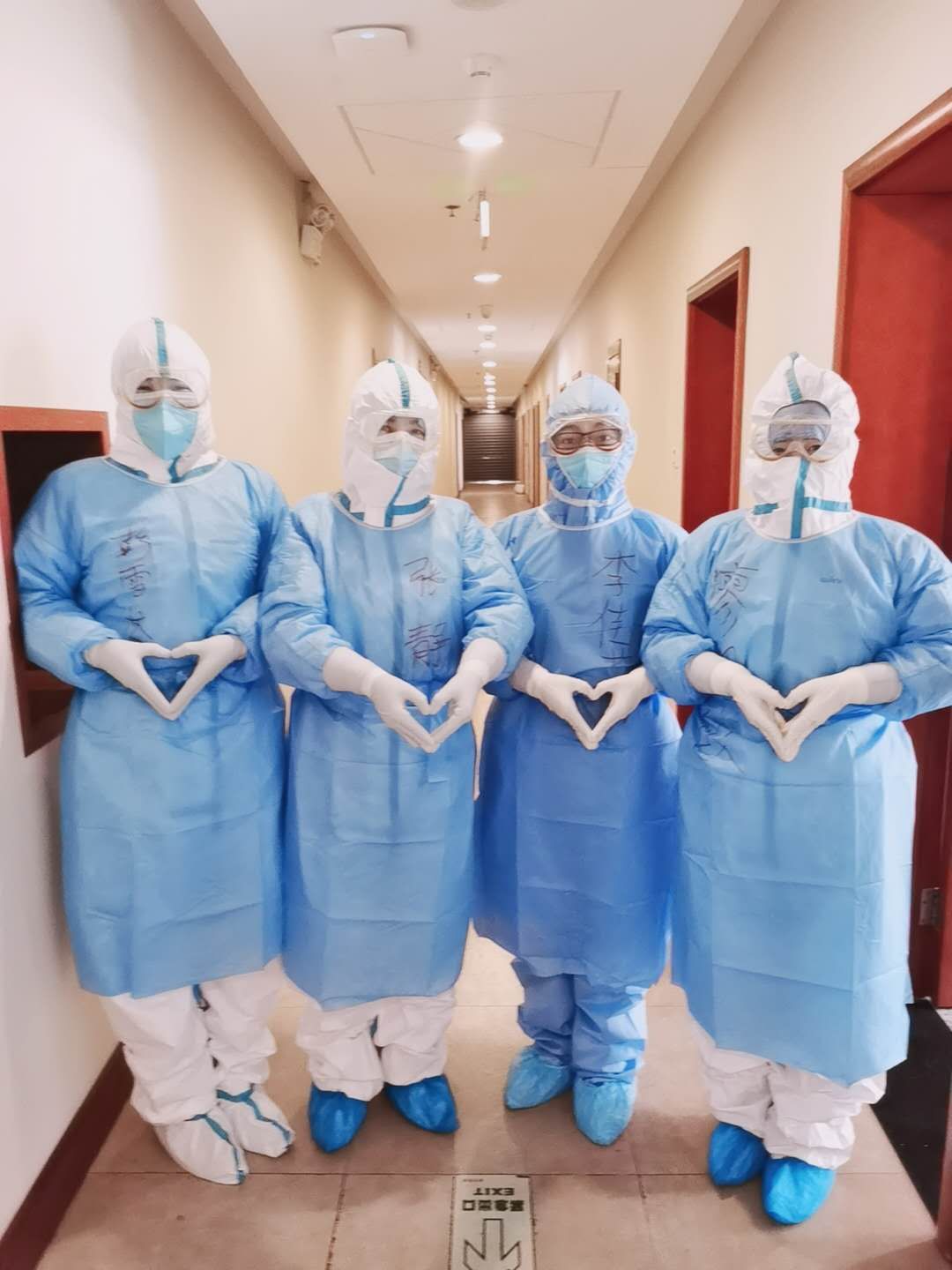 除了在隔离病区的常规护理工作,她们每天还在病区进行健康宣教、给病室和大厅消毒、给病人和医护人员订餐派餐等后勤保障工作。