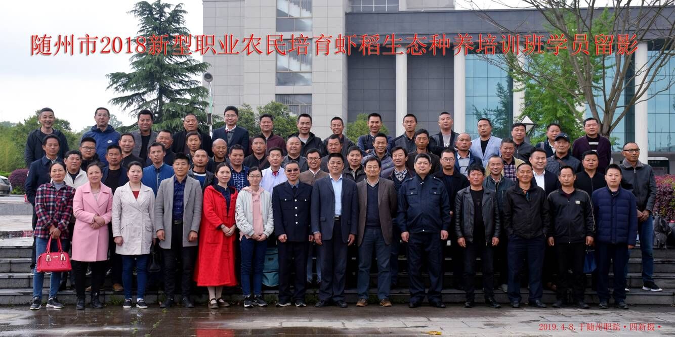 4月9日下午,随州市2018新型职业农民培育虾稻生态种养生产经营型管理人员培训班在我院举行开班仪式,来自全市从事虾稻种养业的65名农民兄弟将接受为期两周的系统专业学习培训,这是我院继今年年初成功承办全市农技人员知识更新培训后又一重要社会培训。该项目为政府公开招标采购项目,我院经过公开答辩,赢得评标专家的青睐和竞争对手的信服,并最终在2019年初成功中标。