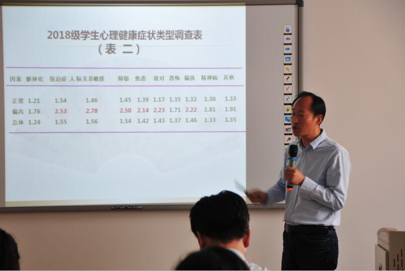 本次讲座由学院大学生心理健康教育与咨询中心朱常昆老师主讲。在持续两个小时的讲座中,朱常昆老师结合辅导员、班主任的工作实际,用详实的数据、生动的案例、系统的理论分析了当前我院大学生的心理健康状况,辅导员、班主任在学生心理健康工作中的作用与优势,辅导员、班主任在学生心理健康教育工作中的职责与任务,辅导员、班主任开展学生心理健康教育工作的方法与技巧以及对我院学生心理健康教育工作的几点感受与建议,风趣幽默的语言,深入浅出的讲解,使所有参加者受益匪浅。