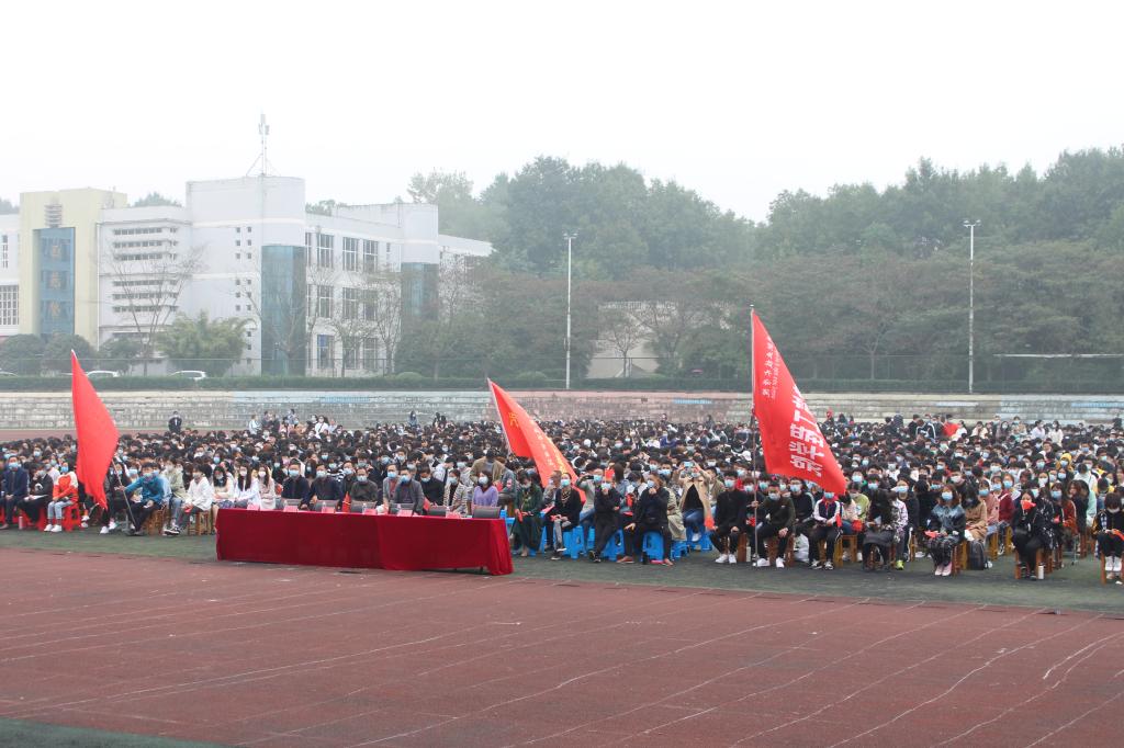 10月13日上午,我校2020年秋季新生开学典礼在田径运动场上举行,学院党委书记李德荣,党委副书记、院长马大奎,党委委员、纪委书记、监察专员李高东,党委委员、副院长童加斌、梁学军、邹厚亏在主席台就坐,学校二级学院院长、各职能处室干部、学生工作管理干部到场。来自全国各地近2200名2020级新生参加了开学典礼,大会由党委委员、副院长邹厚亏主持。
