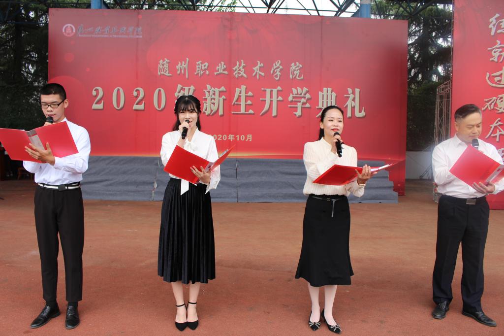邹厚亏在主持典礼时勉励全体学生认真领会马院长的讲话精神,用三年的大学时光践行“厚德重能、求特创新”的随职校训精神,用行动书写精彩的青春。