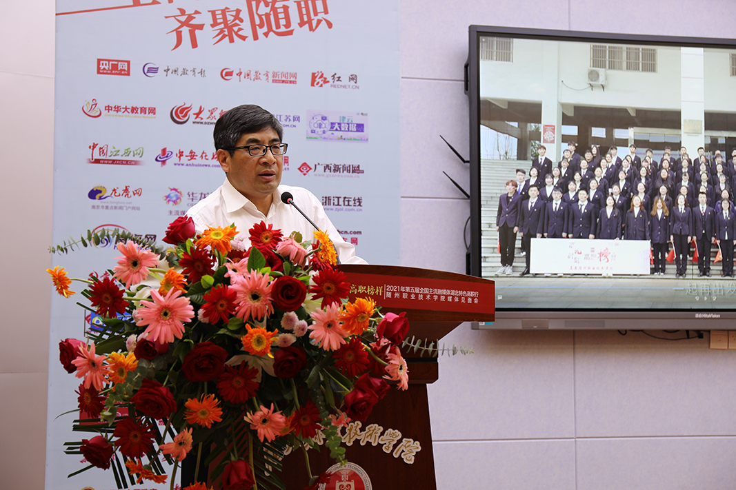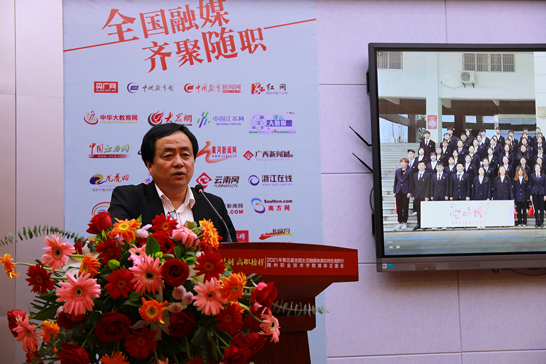 他说,随州职院占地面积1300亩,建筑面积30万平方米,教职工近600人,现有在校大中专生上万人。设置汽车与机电工程学院、医学院、护理学院、旅游与经济管理学院、服装与艺术设计学院、土木与建筑工程学院等6个二级学院,开设50余个应用型专业。在刚刚过去的“十三五”,随州职院坚持“随职梦”三步走战略,实施发展规划龙头工程、招生攻坚生命工程、教育教学中心工程、服务体系保障工程和党的建设引领工程等“五大工程”,各项事业圆满收官,蓄势待发。“十四五”期间,随州职业技术学院将立足随州,服务湖北,以高质量党建引领事业高质量发展,全面提升强质量、重点突破创一流、服务地方作贡献,为创建全省一流、全国知名的“双高”职业院校而努力奋斗,为湖北“建成支点、走在前列、谱写新篇”和随州打造“汉襄肱骨”做出随职应有的贡献。他相信,本次全国主流融媒体聚焦随州职院大型采访活动,一定会对学院事业发展和社会声誉产生积极而深远的影响。